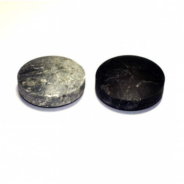 This is a set of 2 pocket unpolished disk harmonizers with a diameter 30 mm. The first harmonizer is made of Shungite, a second harmonizer is made of Tulikivi. Because of pocket harmonizers' small size you can always take them with you.