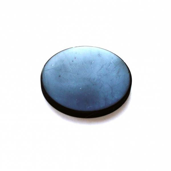 Круглая шунгитовая пластина диаметром 50 мм на с магнитом на обратной стороне, с помощью которого ее легко прикрепить к металлической части бытового прибора.